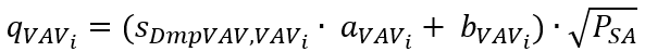 parameters (a, b) of Equation A for each discrete VAV unit VAVi. If the parameter a was detrmined to be negative(-) at either discharge air pressure, then the VAV unit shall be considered faulty.